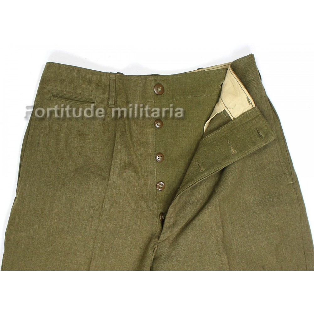 Pantalon US ARMY, modèle en drap "moutarde" avec rabat anti-gaz.