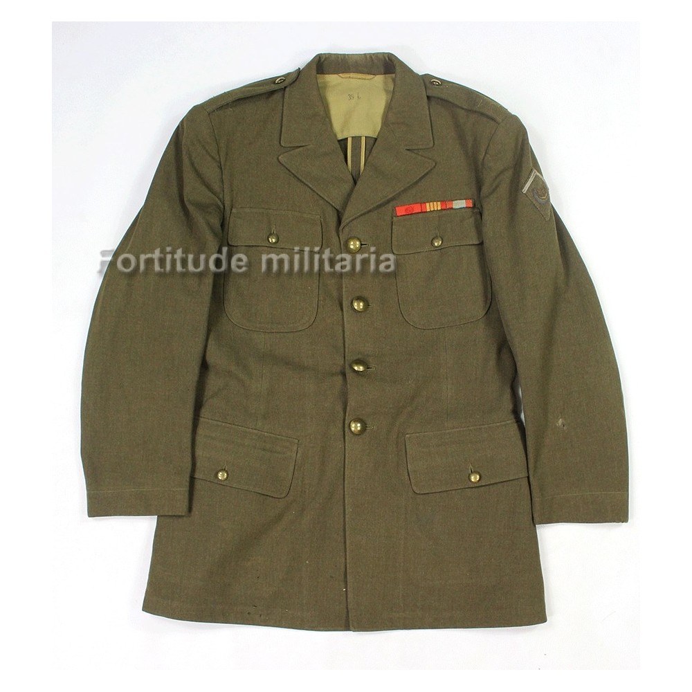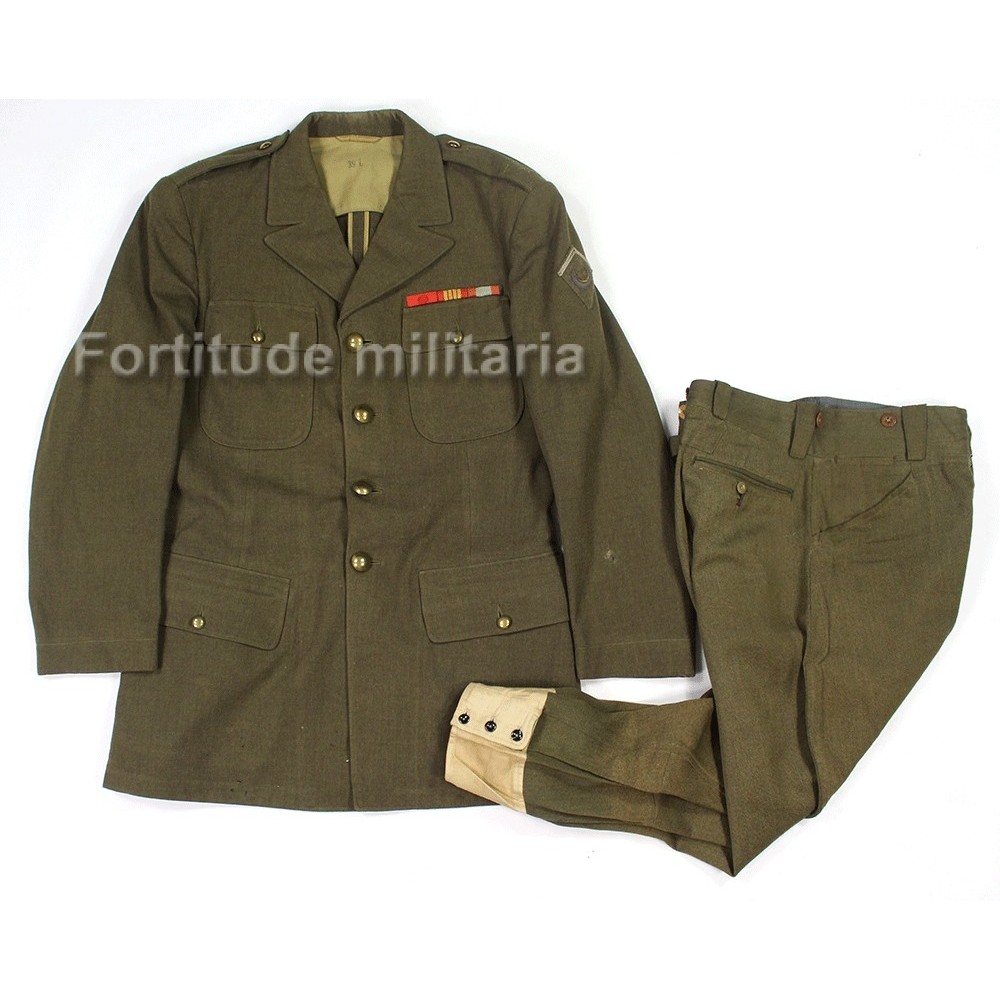Très bel ensemble comprenant la veste ( sur base de veste US ) et le pantalon d'un soldat du 29 RTA, tirailleurs Algériens