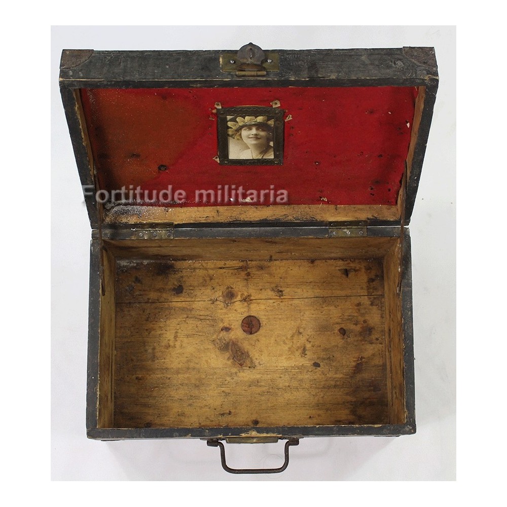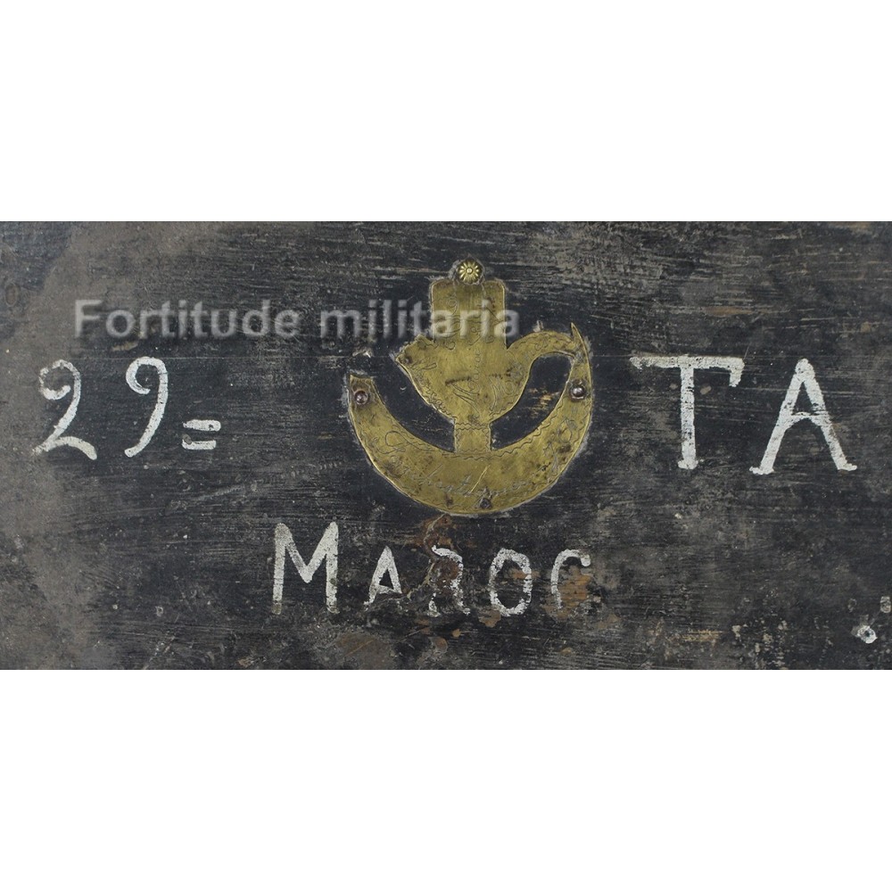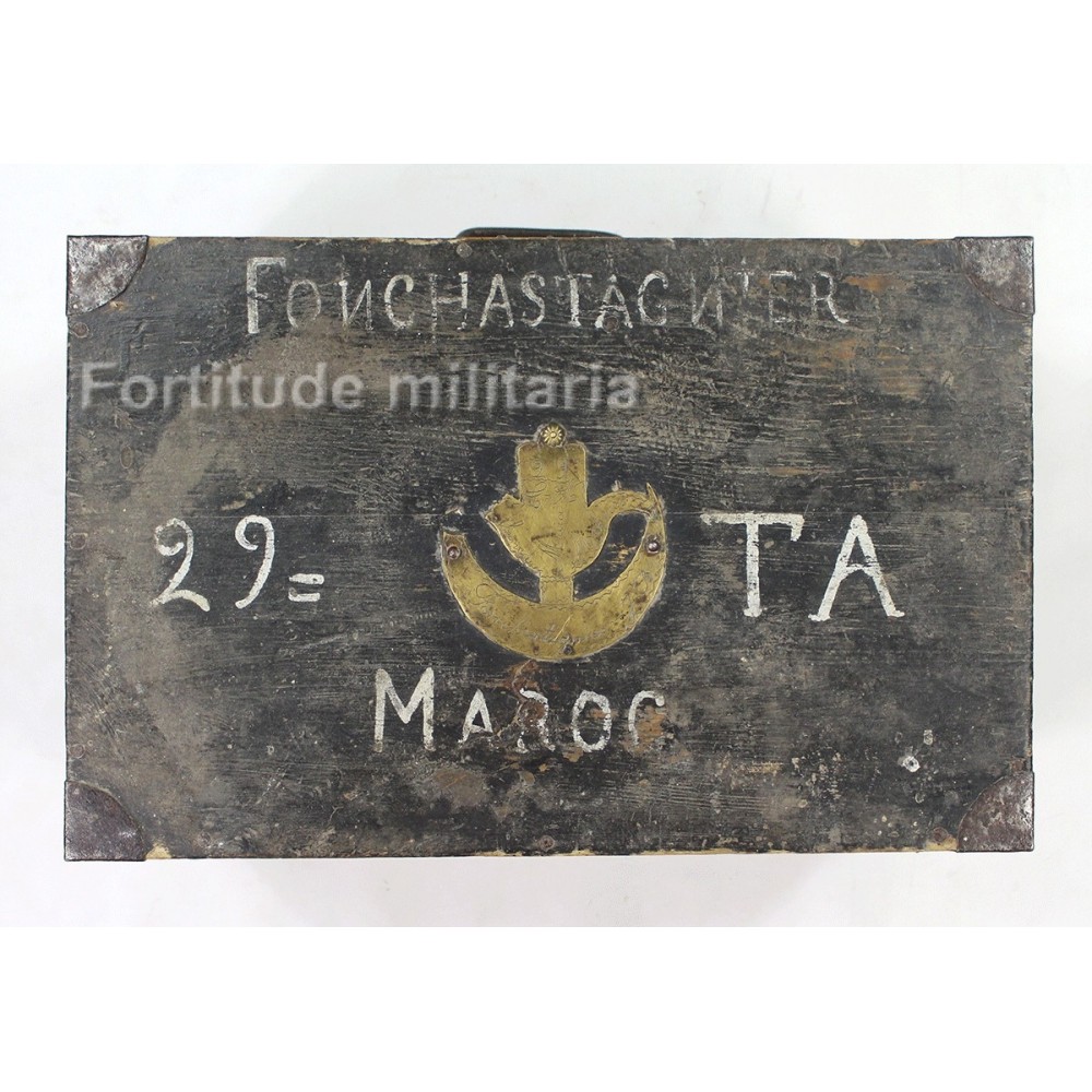 Caisse en bois pour effets personnels, décorée par un soldat du 29 RTA, tirailleurs Algériens.