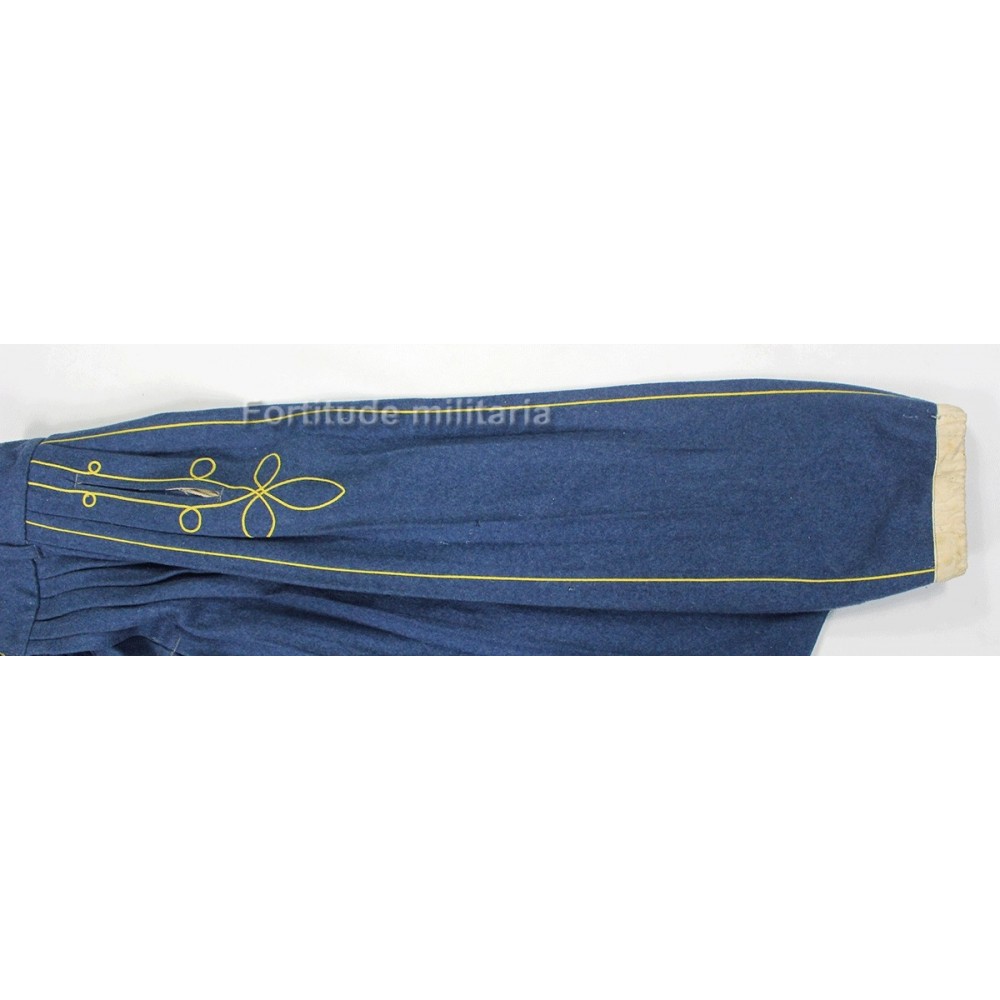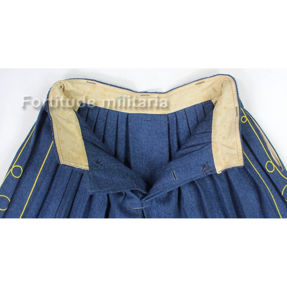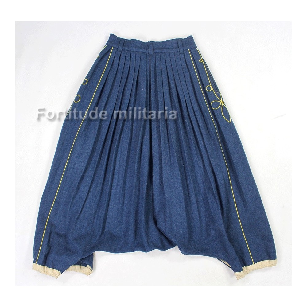 Pantalon Sarouel de Tirailleur, superbe exemplaire en parfait état, drap bleu et broderies jonquille.