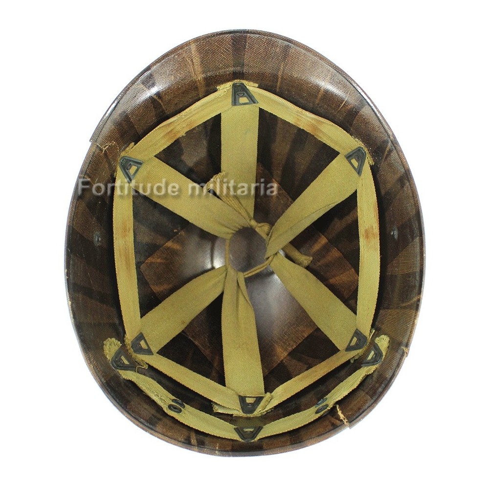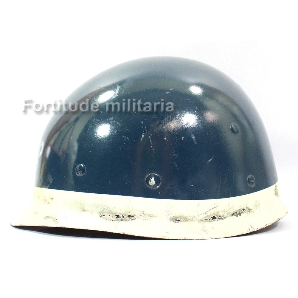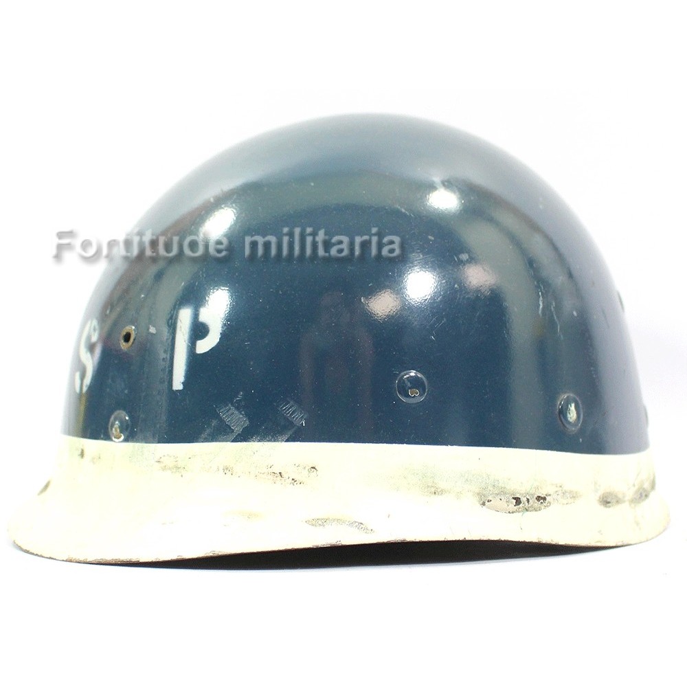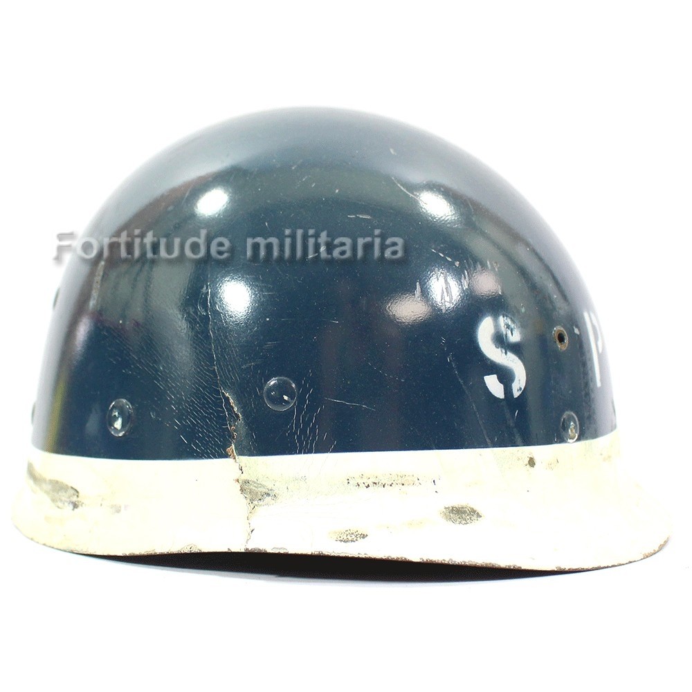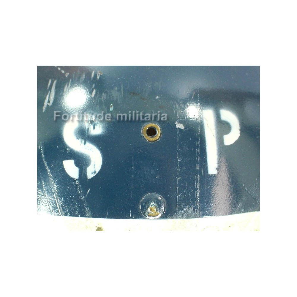 Liner de casque US ARMY, peinture bleue nuit et initiales SP ( shore patrol ) appliquées, probablement post ww2