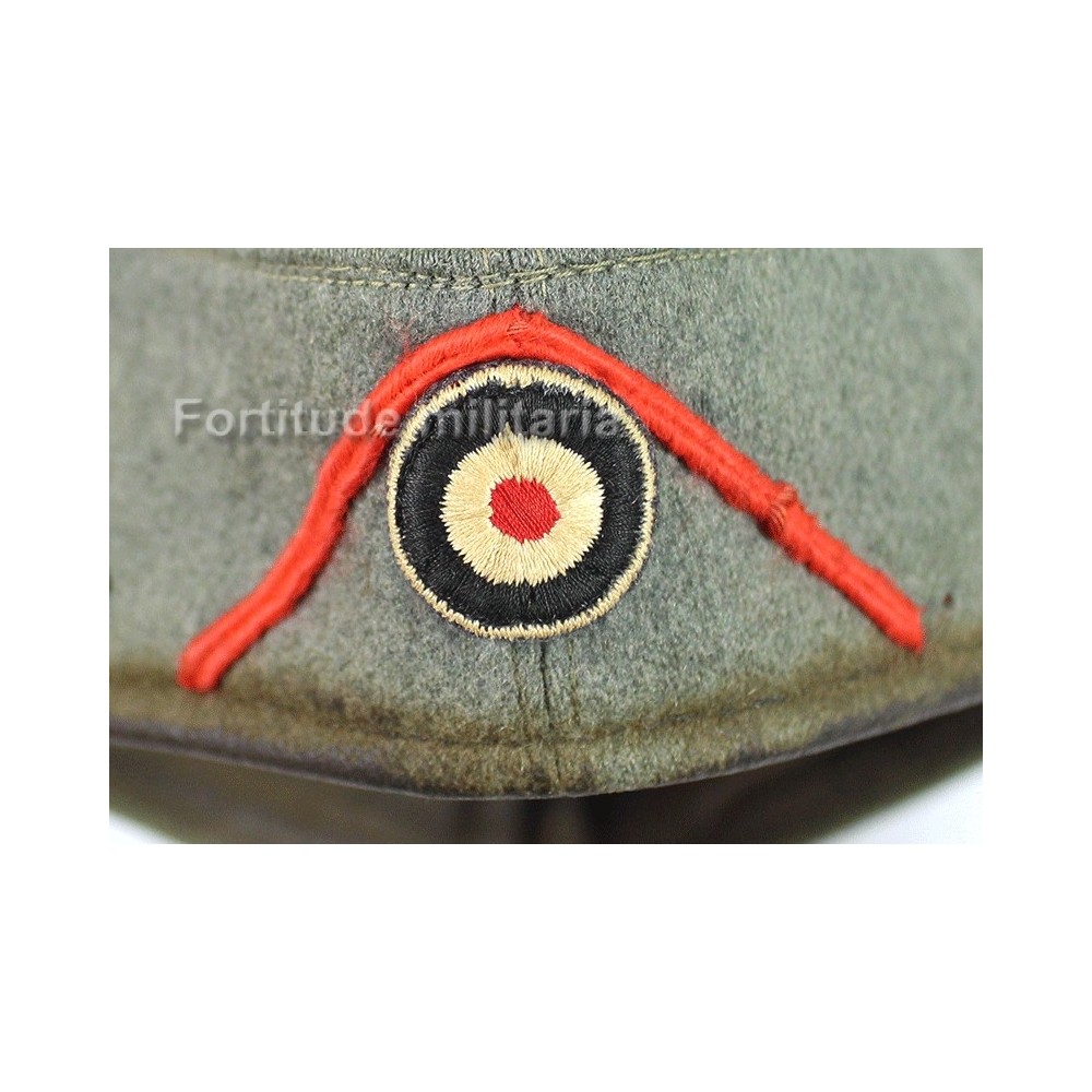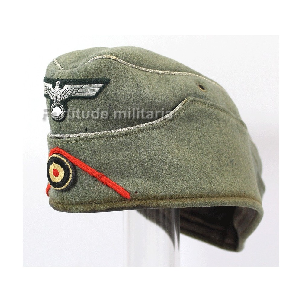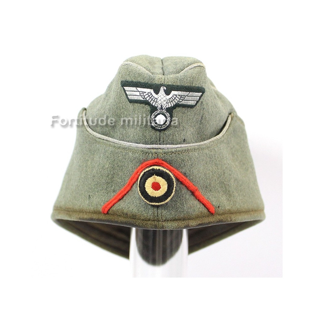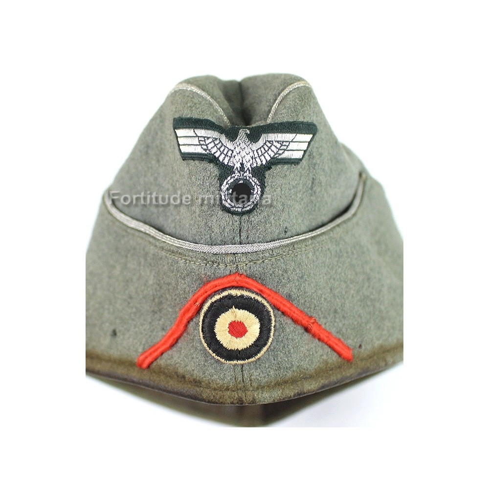 Calot d'officier d'artillerie de la Heer, soutache d'arme rouge montée d'origine.