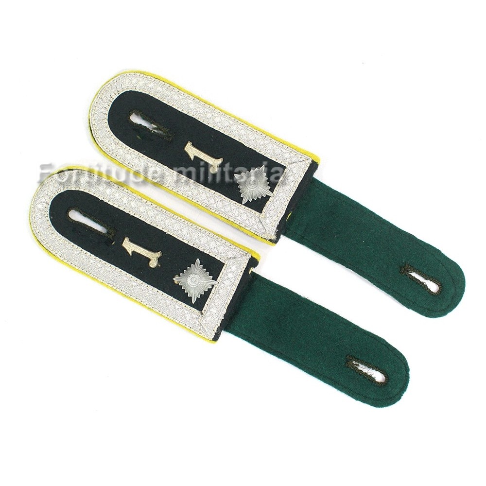 Paire d'épaulette pour sous-officier des unités de transmissions, liseré d'arme jaune.