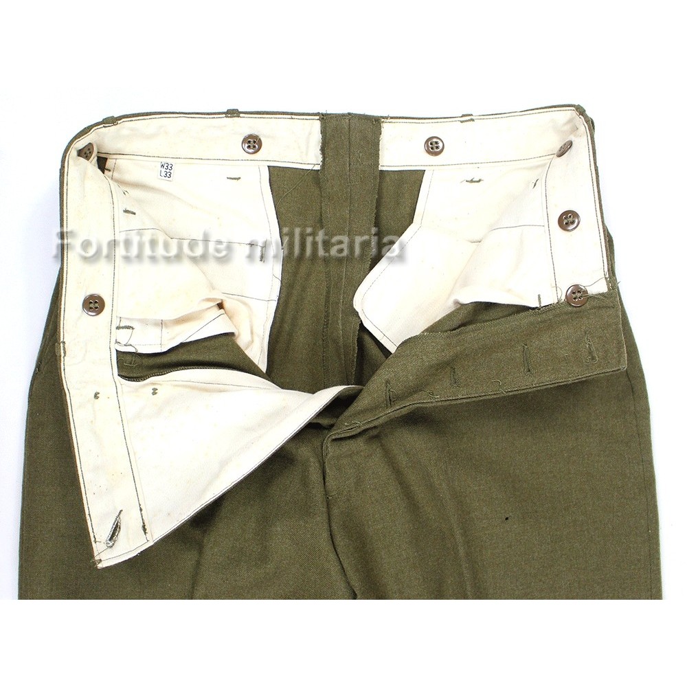 Pantalon US ARMY, modèle en drap "moutarde" avec rabat anti-gaz.
