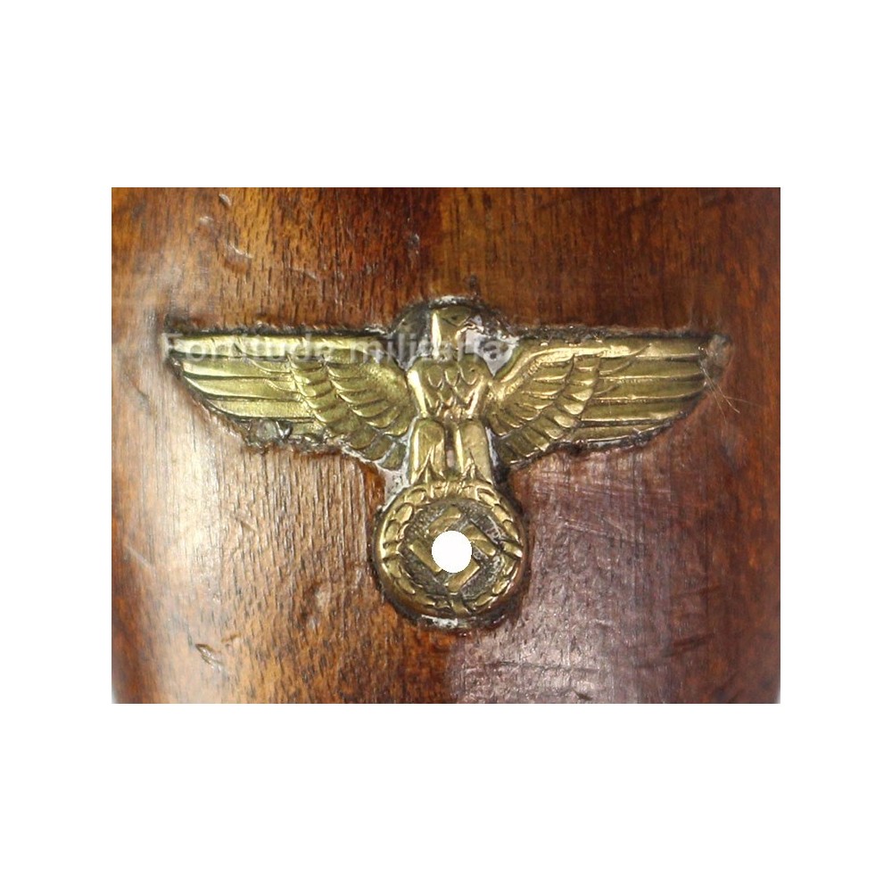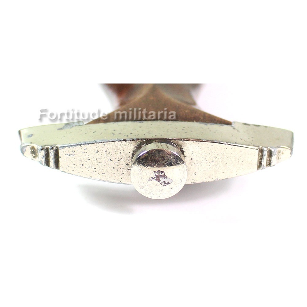 On remarque que l'aigle de la poignée à perdu son argenture, ce qui révèle son matériau d'origine.