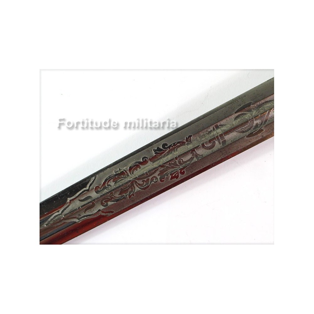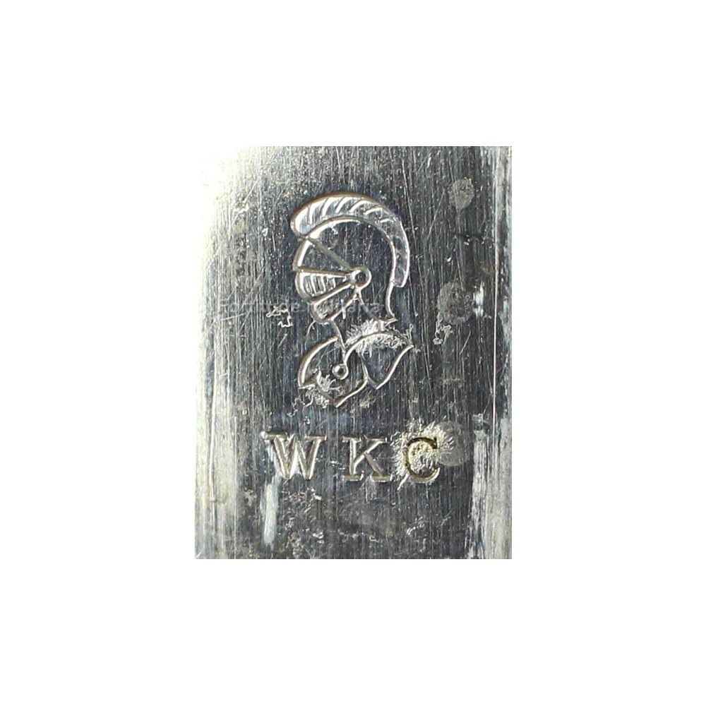 Sur la lame à double gouttière, on trouve les gravures à l'eau forte classiques ainsi que le marquage du fabriquant" WKC ".