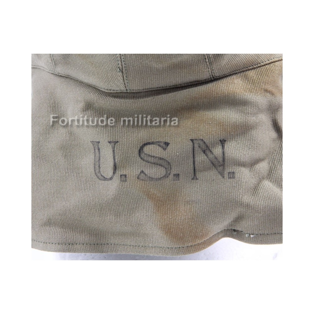 Casquette de pont US NAVY, très bon état, idéal pour un mannequin "à bord", sur un navire ou une barge de débarquement sous son casque M1.