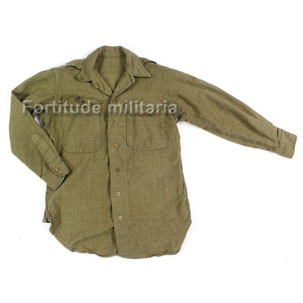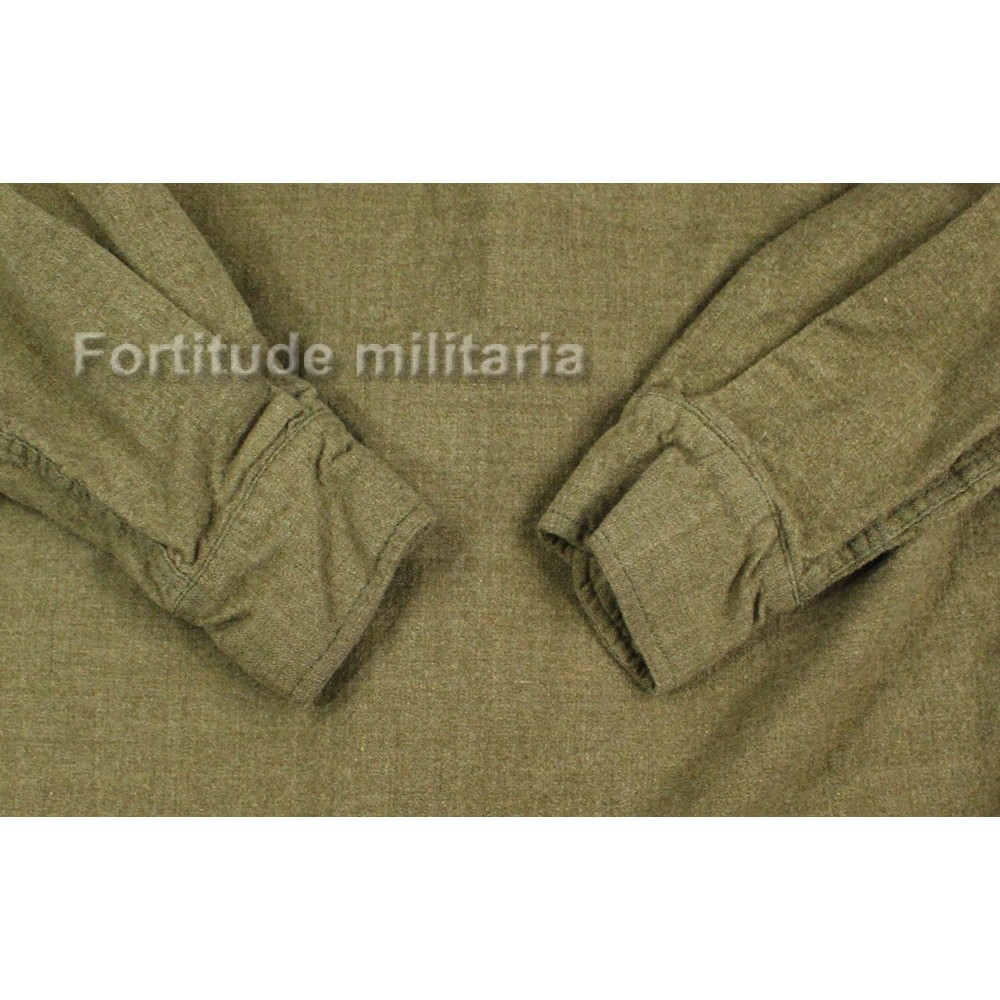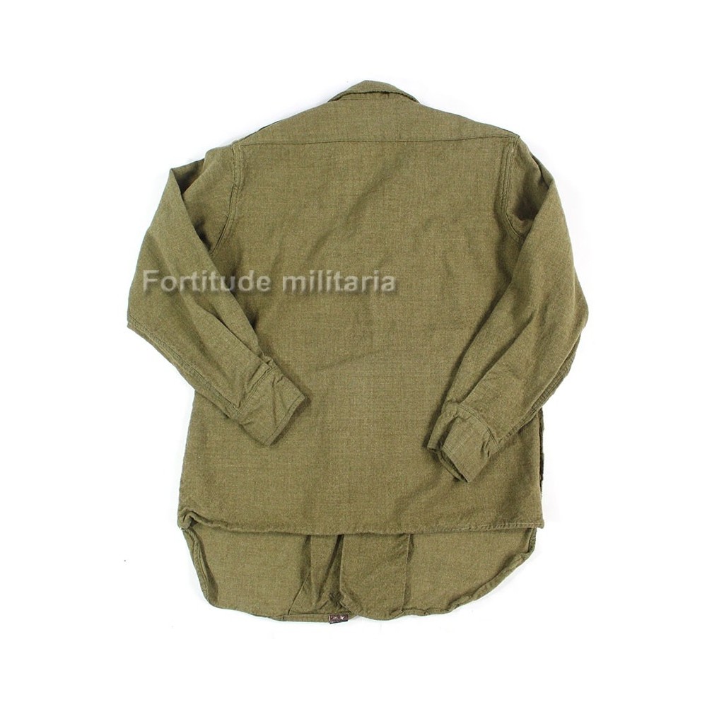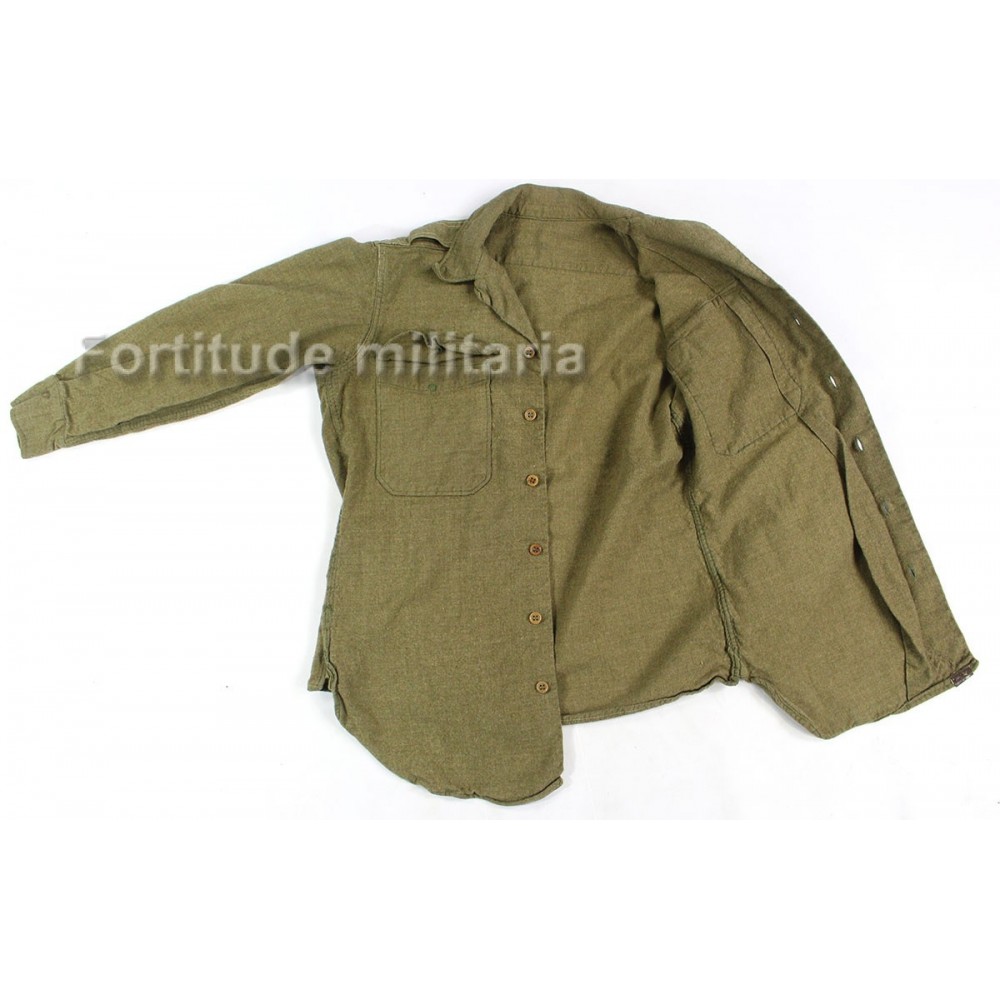 Chemise réglementaire US ARMY en drap "moutarde", modèle précoce sans rabat anti-gaz.