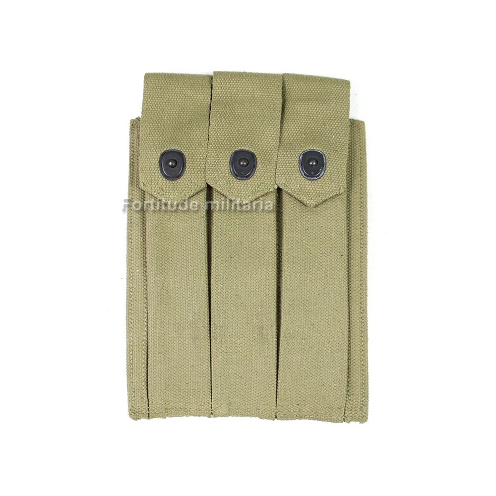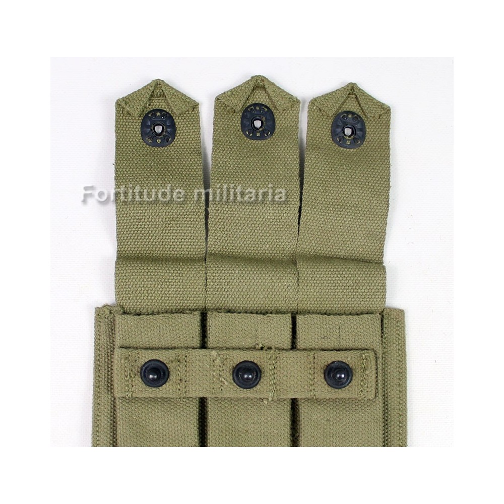 Porte chargeur trois compartiments pour pistolet mitrailleur Thompson, superbe état, bien marqué et daté 1944.
