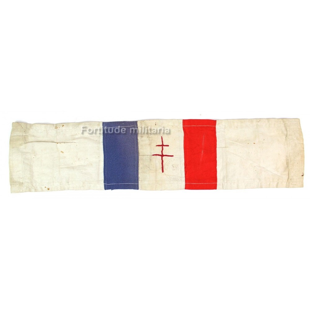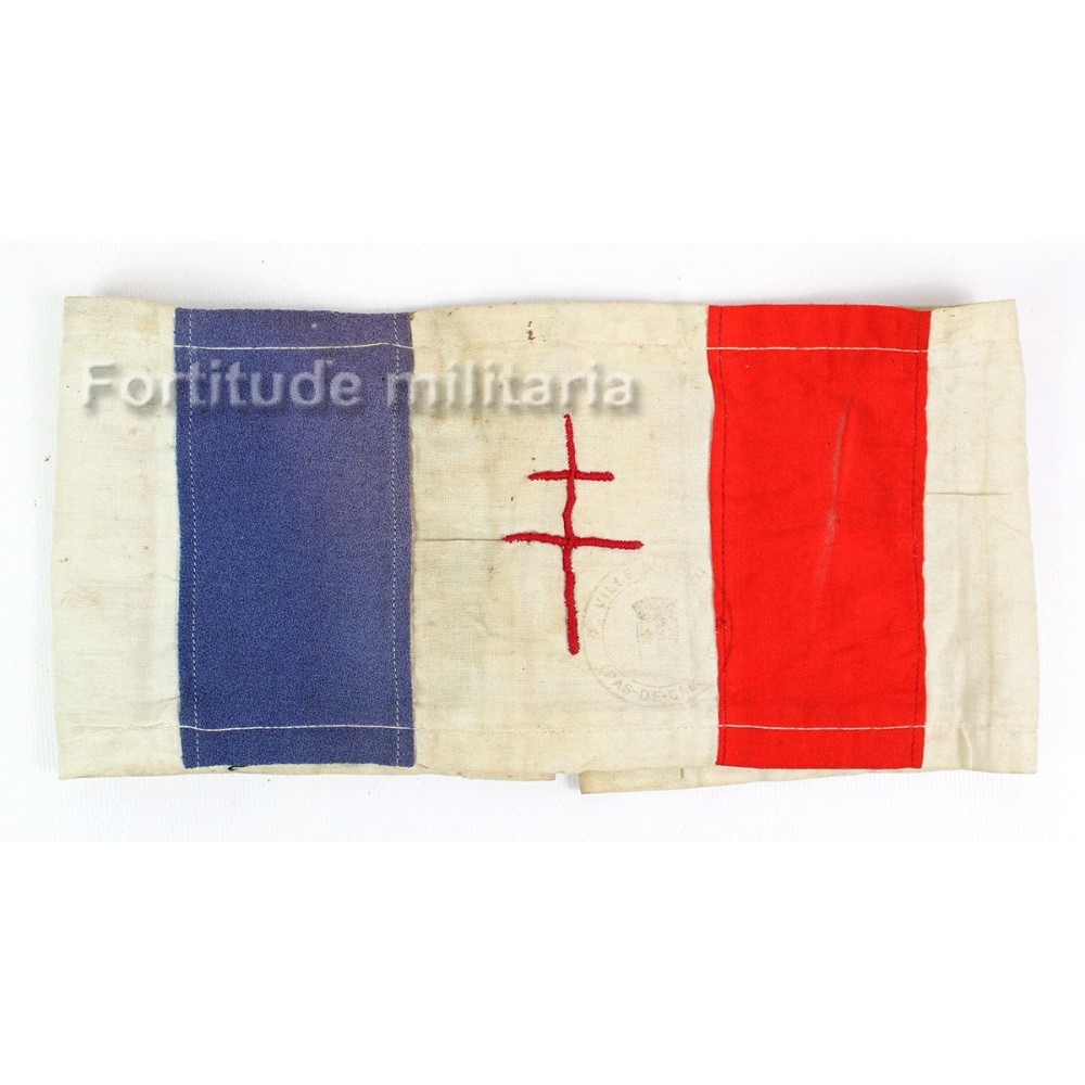 Très beau brassard FFI avec croix de Lorraine brodée et tampon " Pas De Calais "