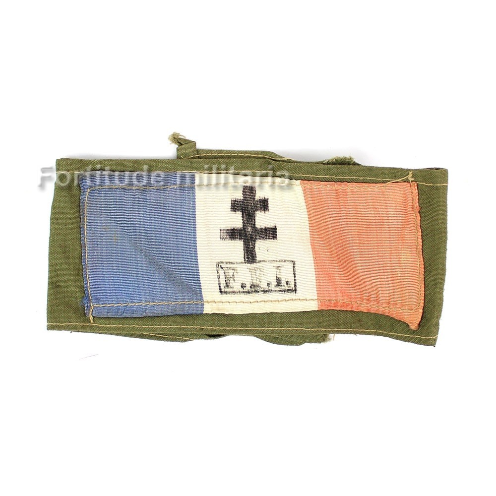 Très beau brassard FFI avec pièce rapportée sur un tissus kaki.