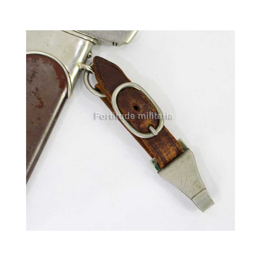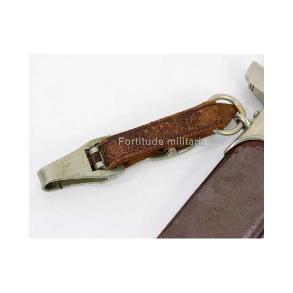 La dague est vendue avec son attache en cuir, également du modèle précoces avec pièces en maillechort.