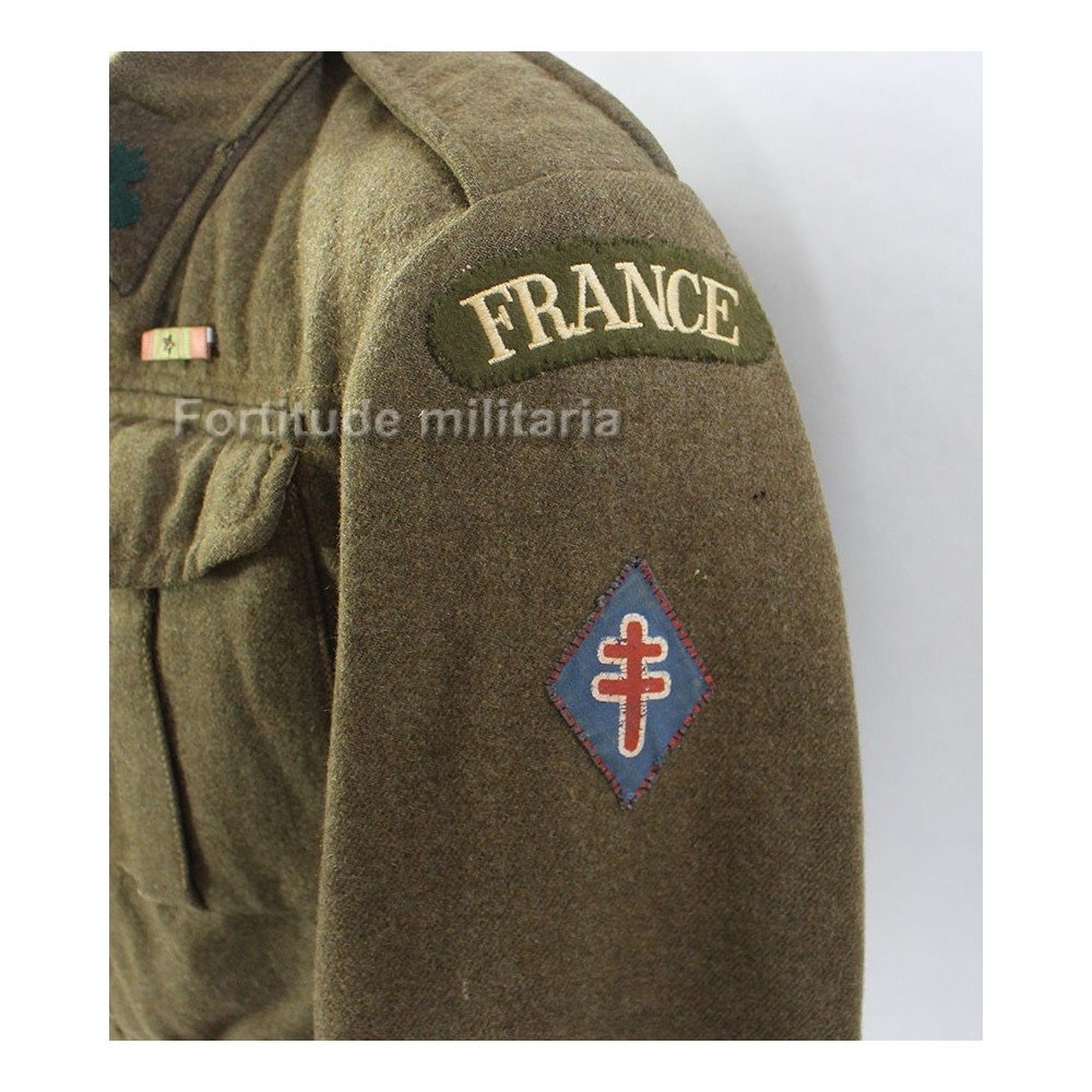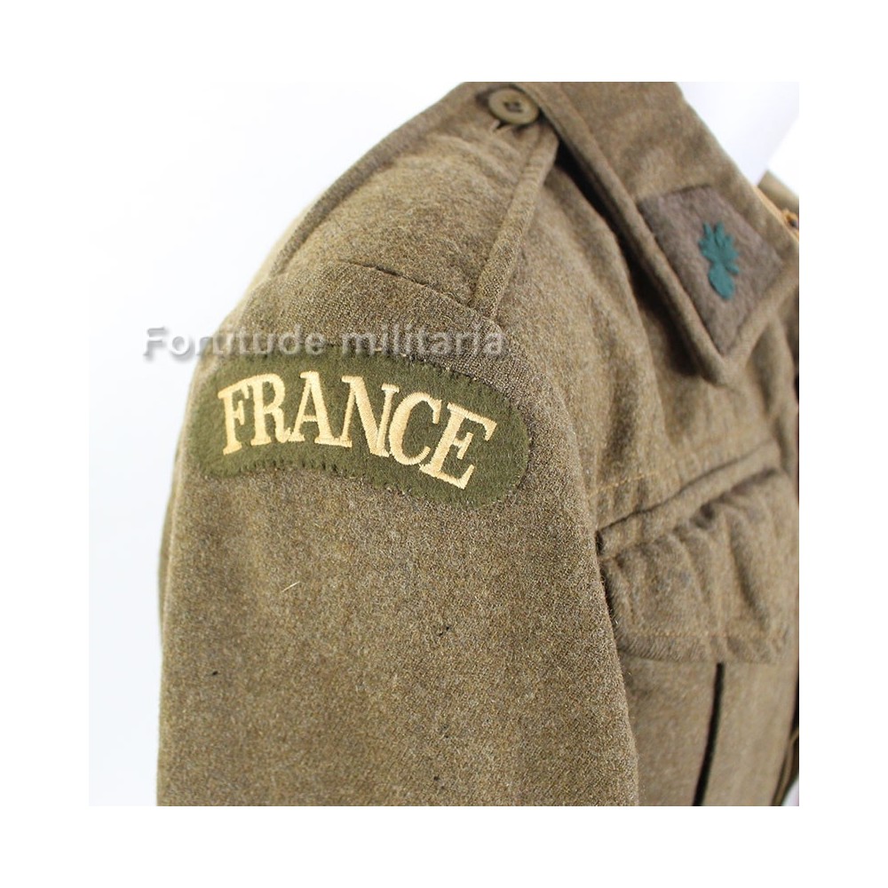 Les bandes "France" et les pattes de col ne sont pas originales mais le reste des insignes est original.
