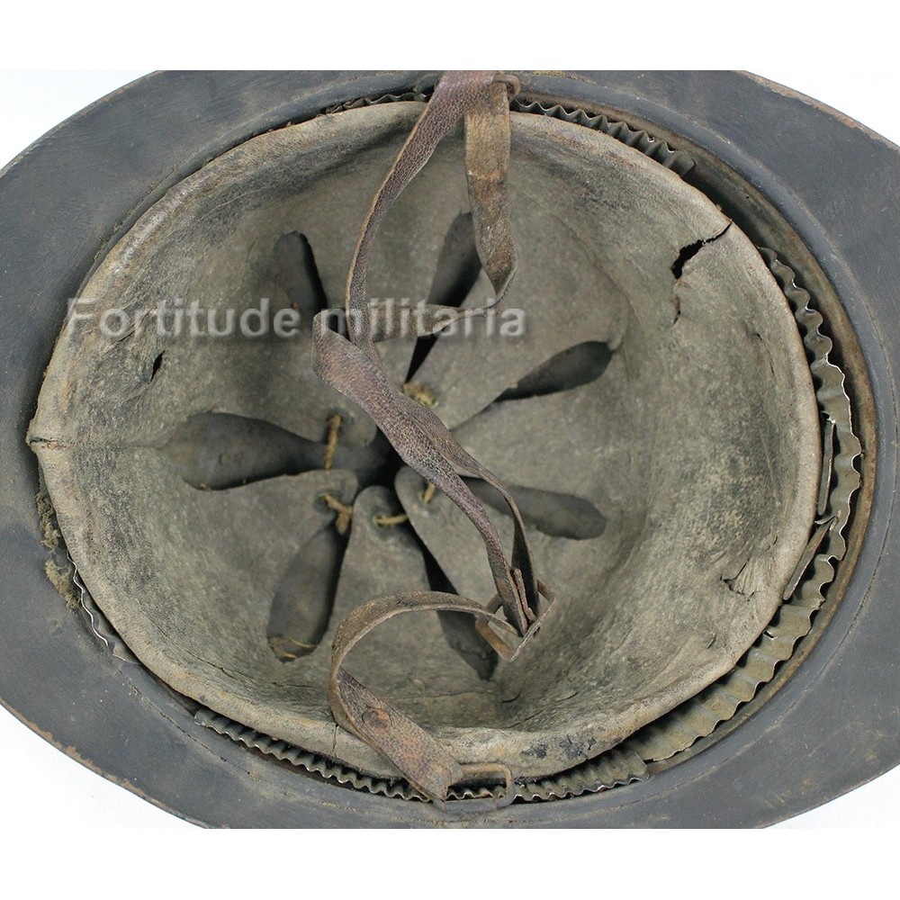 French M-1915 helmet in original blue paint, infantry badge original to the helmet.
